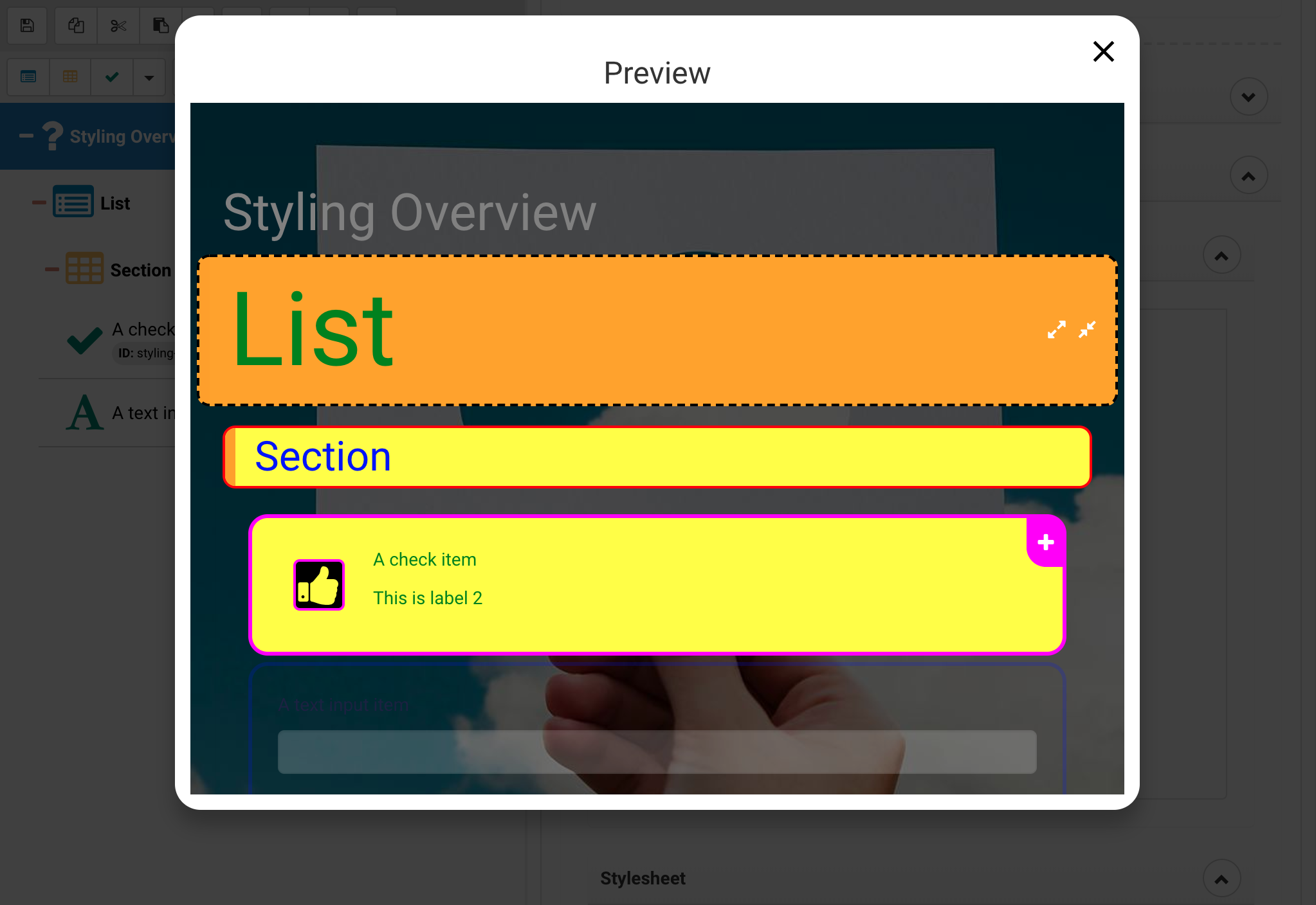 Check items can be customized, specifically the component that is being used for data collection, we already showed how to customize content within a component and now we will evaluate how to address styling of the component itself.