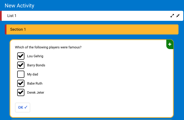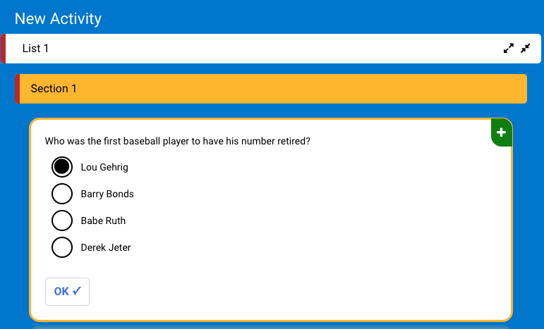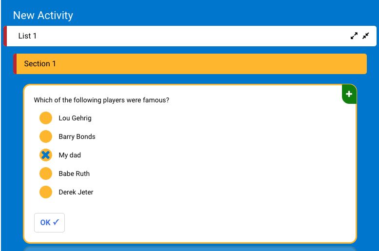 The choice item allows the user to select a choice when given several options. This can be in the form of a single or multiple choice format. These options can be presented in standard format or arranged over an image or a background.