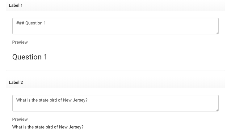 - In the label two section, enter a multiple choice question (for example: What is the state bird of New Jersey?)